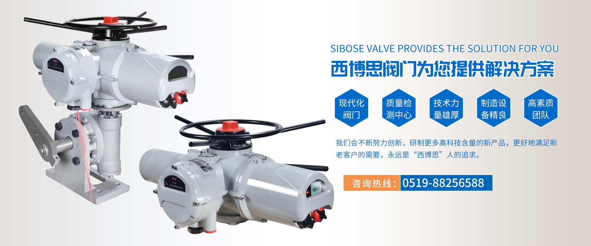 江蘇西博思閥門科技有限公司是一家專業(yè)從事各類電動(dòng)執(zhí)行器,電動(dòng)閥門集研發(fā)、生產(chǎn)、銷售、服務(wù)于一體的技術(shù)型企業(yè)。產(chǎn)品功能齊全、性能可靠、控制系統(tǒng)先進(jìn)、使用維護(hù)方便,被廣泛應(yīng)用于電力、冶金、石油、煤炭、化工、造紙、自來水、污水處理、 物聯(lián)網(wǎng)農(nóng)田灌溉等。產(chǎn)品質(zhì)量穩(wěn)定可靠,受到廣大用戶的普遍贊譽(yù)。